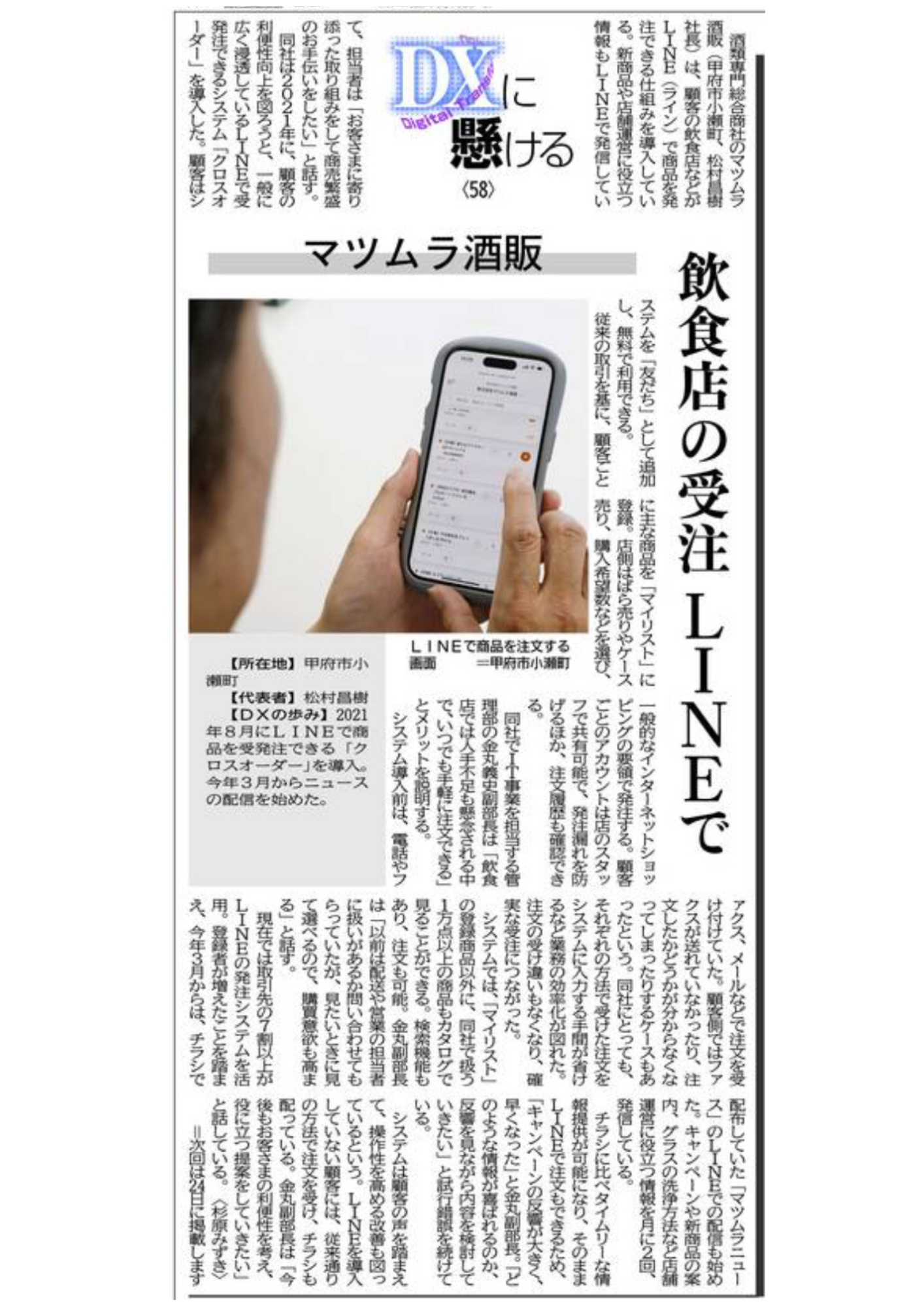 LINEで発注や情報発信できるシステム導入しました〈山梨日日新聞に掲載されました〉