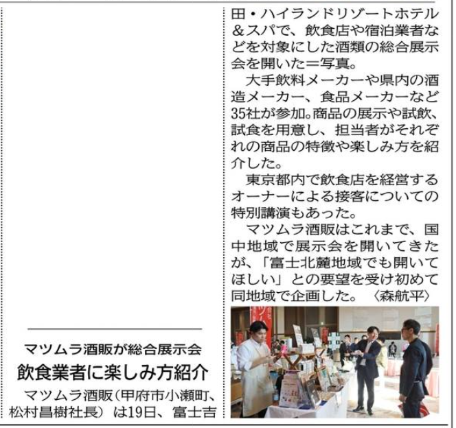 富士北麓地域初開催!!酒類総合展示&提案会「酒類トレンドナビ2025」〈山梨日日新聞に掲載されました〉